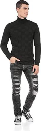 Herren Pullover – Stylischer Strickpullover im modernen Design mit hohem Perfekt für Freizeit, Alltag & Coole Streetwear Outfits - CP212 Schwarz Grau XL