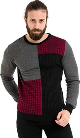 Herren Pullover – Stylischer Strickpullover im modernen Design mit hohem Perfekt für Freizeit, Alltag & Coole Streetwear Outfits - CP215 Schwarz Grau S
