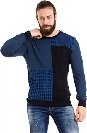Herren Strickpullover Sweater Rundhals Farbblock Muster Pulli CP263 Dunkelblau XL