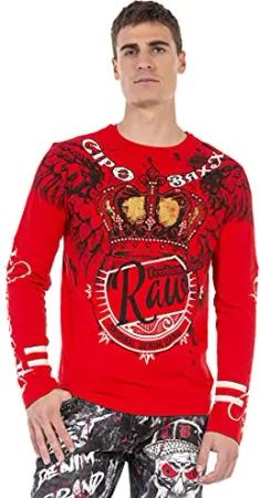 Herren Sweatshirt CL452 Rot – Stylischer Pullover im Modernen Streetwear Look mit Rundhals & Print – Bequemer Sweater für Alltag, Freizeit & Party - CL452 Rot L