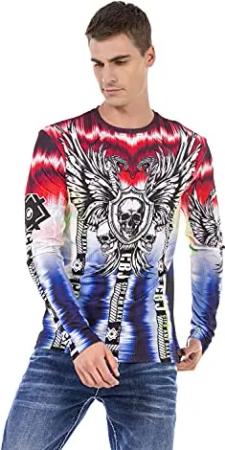 Herren Langarmshirt Longsleeve Print Farbig Batik Sweatshirt Shirt CL485 Schwarz L