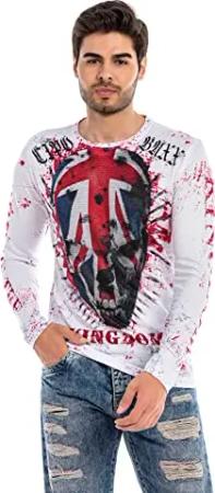 Herren Langarmshirt Aufdruck Strasssteine Longsleeve Sweatshirt Shirt CL488 Weiß M
