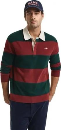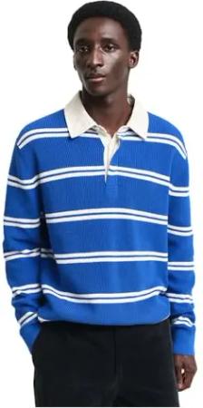 Herren Ribbed Cotton Rugger Pullover, Lapis Blue, Large