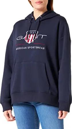 Damen Archive Shield Hoodie Kapuzenpullover, Evening Blue, 48