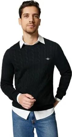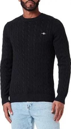 Herren Cotton Cable C-neck Pullover, Schwarz, S EU
