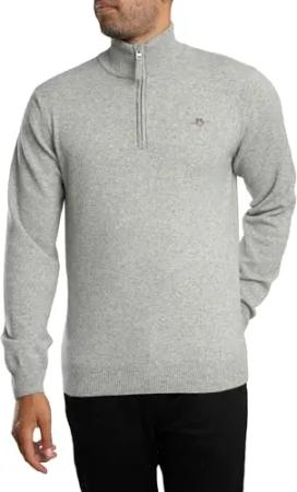 Herren Superfine Lambswool Half Zip Pullover, Grey Melange, XL EU
