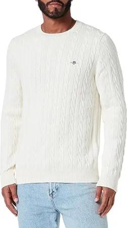 Herren Cotton Cable C-neck Pullover, Grey Melange, L EU