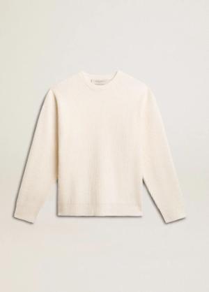 Gerippter Herren-rundhalspullover Aus Wolle In Lived-in-white, , Größe: XL