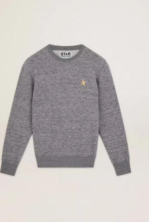 Herren-sweatshirt Aus Grau Melierter Baumwolle Mit Goldstern Vorne, , Größe: XS