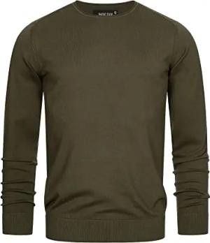 Herren Gamal Strickpullover aus 80% Baumwolle | Pullover O-Neck Pulli Männer Army, S