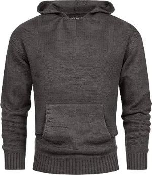 Herren INLedger Strickpullover mit Kapuze | Herrenpullover Pulli Hoodie Cardigan Männer Charcoal Mix, S