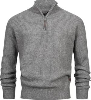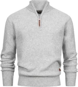 Herren INPeace Half Zip Grobstrickpullover mit Stehkragen und Reißverschluss | Strickpullover für Männer Grey Mix, L