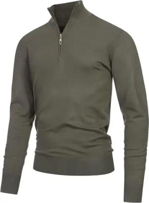 Herren INSwift Strickpullover mit Stehkragen und Reißverschluss | Herrenpullover Pulli für Männer Army, S
