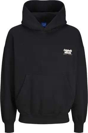 Hoodie Herren Regular Fit JJEADRIAN Kapuzenpullover Pullover Sweater Print Schwarz XL, Größe:XL, Farbe:Black (Jack & Jones)