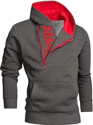 Herren Zipper Kapuzenpullover Sweatjacke Pullover Hoodie Sweatshirt 4026 Anthrazit/Rot L