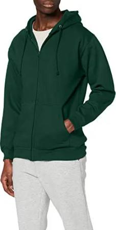Herren Kapuzenpullover mit durchgehendem Reißverschluss (Large) (Flaschengrün)