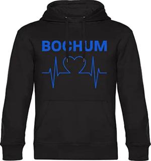 Kapuzen Sweatshirt - Bochum - Herzschlag - Druck blau - Hoodie Größe XL schwarz