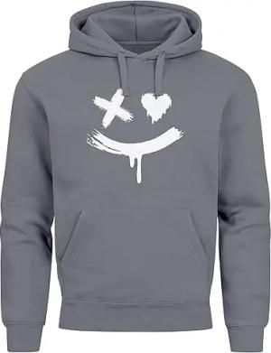 Hoodie Herren Bedruckt Techwear Fashion Streetstyle Smiling Face Smile Trend Print Aufdruck Convoy Grey S