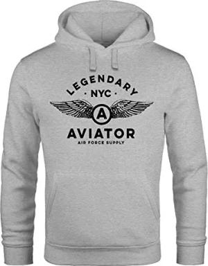 Hoodie Herren Legendary NYC Aviator Air Force Luftwaffe Flügel Kapuzen-Pullover Männer grau L