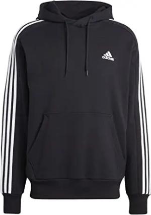 Herren Essentials Fleece 3-Stripes Logo Hoodie, Black/White, 3XL