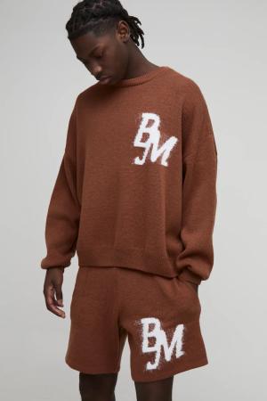 Kastiger Flauschiger Bm Strickpullover Und Shorts - Taupe - M, Taupe