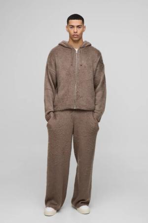 Kastiger Flauschiger Oversize Official Trainingsanzug Mit Reißverschluss Und Kapuze - Taupe - M, Taupe