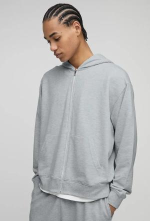 Kastiger Oversize Basic Hoodie Mit Reißverschluss - Grey Marl - L, Grey Marl