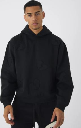 Kastiger Oversize Hoodie Mit Herz-Applikation - Black - S, Black