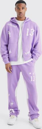 Oversize Homme Trainingsanzug Mit Reißverschluss Und Kapuze - Purple - L, Purple