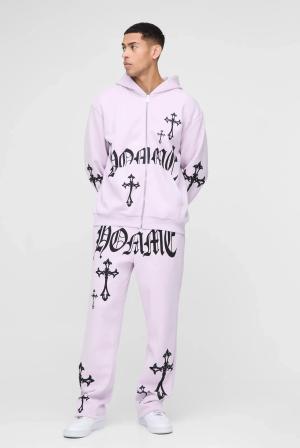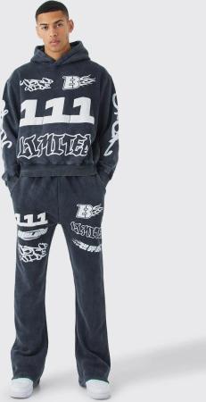 Kastiger Oversize Trainingsanzug Mit Print Und Kapuze - Black - L, Black