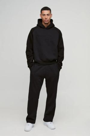 Oversized Man Raglan Hooded Tracksuit - Black - M, Black