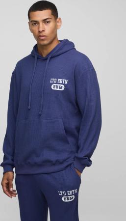Oversize Hoodie In Waffeloptik - Blue - L, Blue