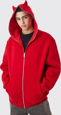 Oversize Hoodie Mit Teufelshörnern - Red - S, Red