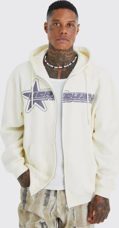 Oversize Hoodie Mit Worldwide-Print Und Reißverschluss - Ecru - L, Ecru