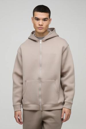 Oversize Scuba Hoodie Mit Reißverschluss - Taupe - M, Taupe