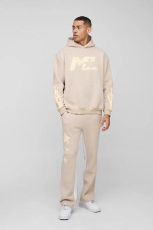 Oversize Trainingsanzug Mit Kapuze Und M Stern Print - Stone - L, Stone