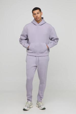 Oversized Boxy Bonded Scuba Hooded Tracksuit - Purple - S, Purple