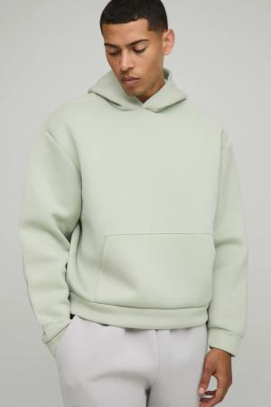 Oversized Boxy Emboss Bonded Scuba Hoodie - Sage - S, Sage