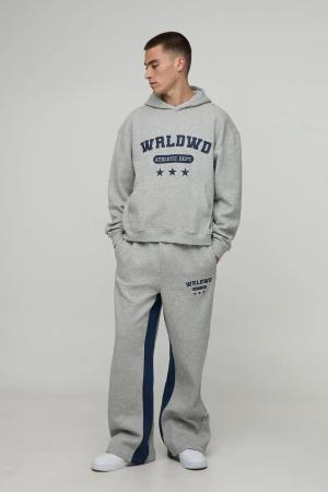 Oversized Boxy Worldwide Star Varsity Hooded Gusset Tracksuit - Grey Marl - S, Grey Marl