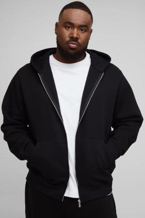 Plus Basic Boxy Zip Through Hoodie - Black - 2Xl, Black