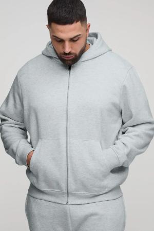 Plus Basic Boxy Zip Through Hoodie - Grey Marl - 2Xl, Grey Marl