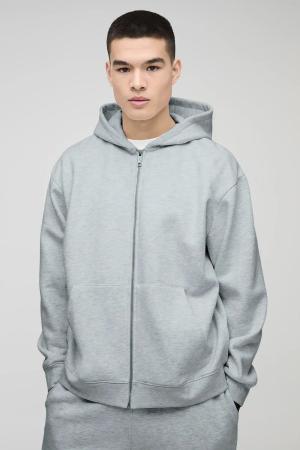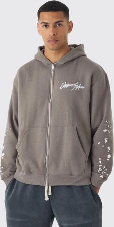 330gsm Oversize Hoodie mit BM Signature Print und Reißverschluss - Grau - M, Grau