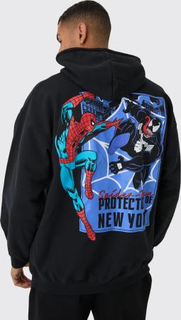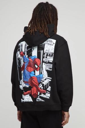 Black Oversized Marvel Spiderman License Printed Hoodie