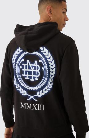 Hoodie mit Mmxiii Print und Reißverschluss - Schwarz - XS, Schwarz
