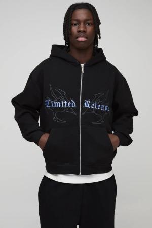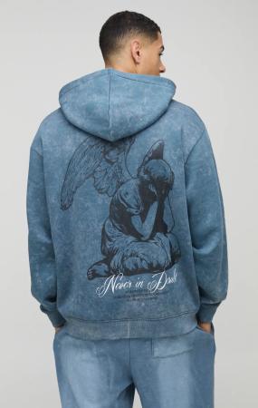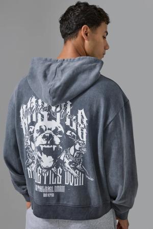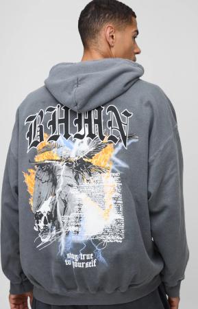 Kastiger Oversize Hoodie mit Gothic Print und Reißverschluss