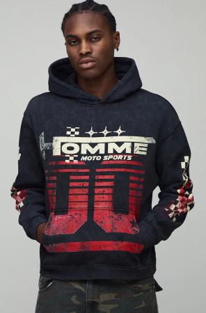 Kastiger Oversize Hoodie mit Moto Racing Print - Schwarz - S, Schwarz