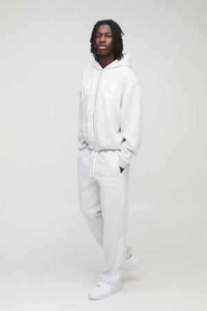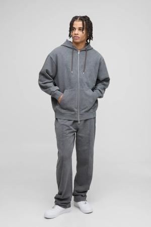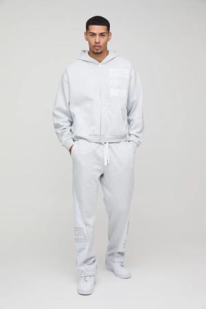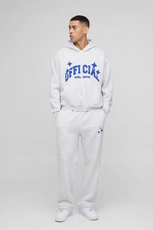 Kastiger Oversize Trainingsanzug mit Official-Applikation und Reißverschluss - Grau - L, Grau