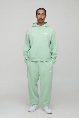 Kastiger Oversize Trainingsanzug mit Kapuze und Applikation - Grün - S, Grün