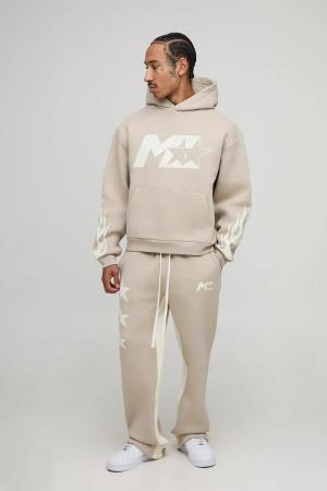 Kastiger Oversize Trainingsanzug mit M Stern Print und Kapuze - Grau - M, Grau