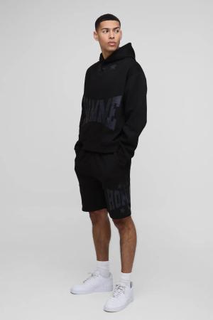 Kastiger Oversize Trainingsanzug mit Print und Kapuze - Schwarz - XL, Schwarz